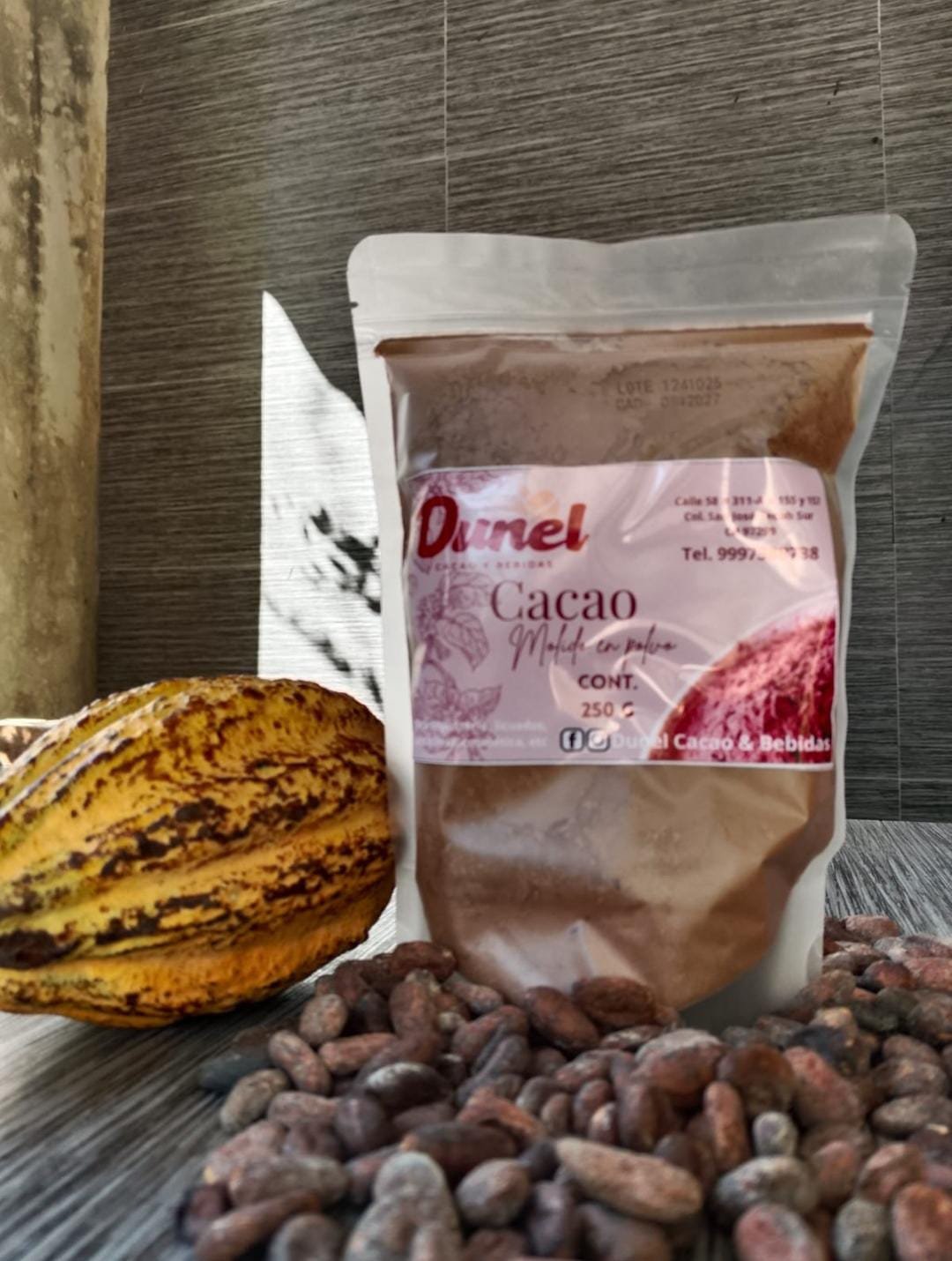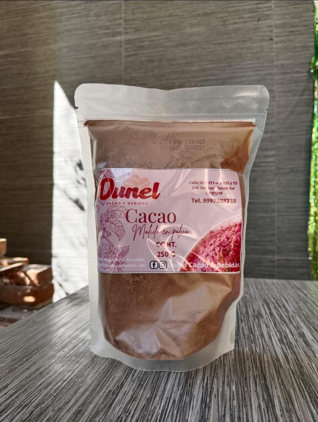 Bolsa de cacao molido en polvo, 100% cacao, sin aditivos. Excelente para repostería, pastelería, licuados, cosmética, etc.
